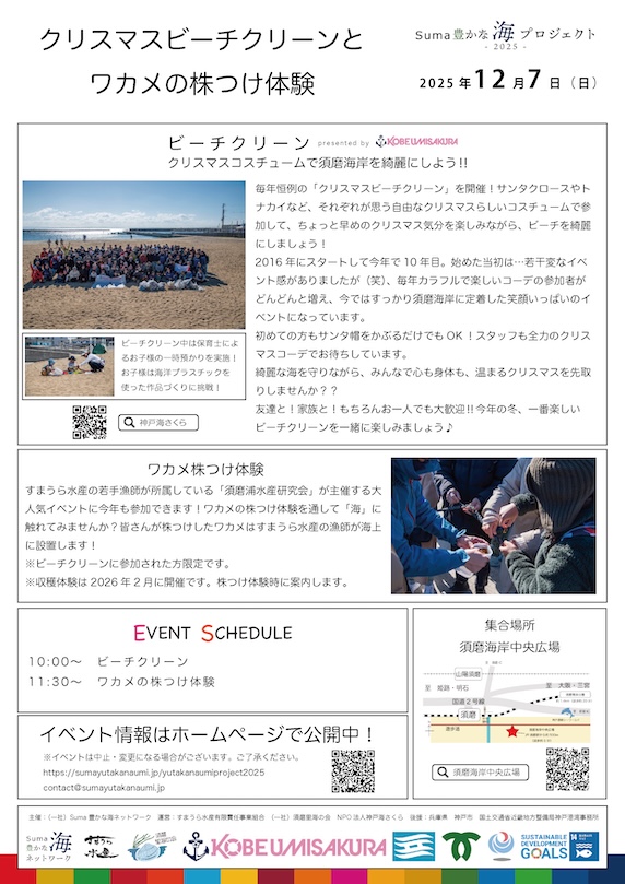 2025年12月7日(日)10:00~、毎年恒例のクリスマスビーチクリーンを開催します!!!