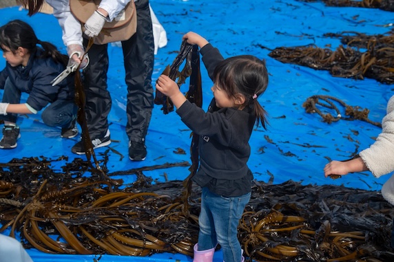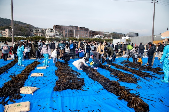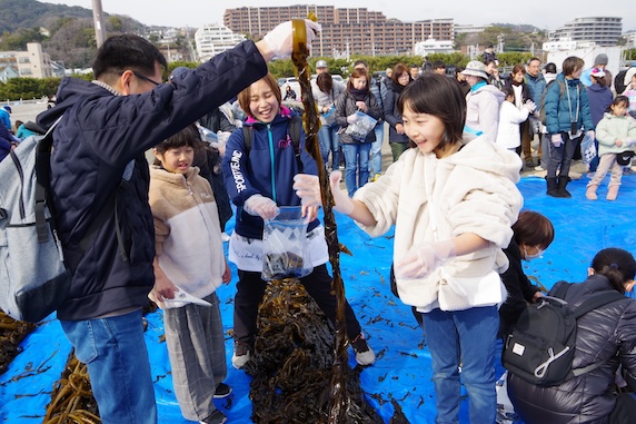 第314回クリーンアップ&ワカメ収穫体験会を開催しました!! 2.16(Sun) 2025年2月16日(日)、神戸海さくら314回目のビーチクリーンを行いました。 ワカメ収穫の日は、例年、悪天候がほとんどでしたが、今回は、ひっさしぶりにいいお天気!!ポカポカ陽気で、風も穏やか♪ 本日は、『Suma豊かな海プロジェクト2024』の1年間の締めくくりである閉幕式が開催されることもあり、大人気イベント早採りワカメの収穫があることもあり、保育士さんによる『お子様一時預かりプロジェクト』の初回ということもあり、ビーチクリーンにKOBerrieS♪が参加してくれていることもあり、、、おかげさまで、200人を超える方々が集まってくださいました!! これまで、イベント目当てで来られた初参加の方々は、熱すぎる心意気のリピーター組と比べると、どうしてもビーチクリーンへの熱意がやや劣るという印象があったのですが、今回も含め、ここ最近は、初参加の方々もオープニングからきちんと説明を聞いてくださっていたり、熱心に小さなゴミまで拾ってくれる姿が目に付くようになりました☆意識の高い方々が増えてきており、ほんと、主催者冥利に尽きます!! そして、今年のワカメは豊作♪♪例年と比較して、多くのワカメが育ちましたので、総勢150人の方々にワカメ収穫を体験していただくことができました! 採れたてのワカメ、楽しんでいただけましたでしょうか??しゃぶしゃぶして食べるの美味しいですよね〜♪お湯に潜らせると、パッと緑色に変わるのもとても楽しい!!!ちなみに私たちは、収穫日当日から3日連続でワカメ料理を食べました。笑 4月からの「Suma豊かな海プロジェクト2025」にも、乞うご期待ください! ■活動報告・参加者:233名・燃えるゴミ:13袋・ビン、缶:1袋・ペットボトル:1袋 『お子様一時預かりプロジェクト』の保育士さんのご紹介です♪ 今月も多くの方が参加してくださいました! ビーチクリーンスタート! みんなで記念撮影☆ この日は、『Suma豊かな海プロジェクト2024』の閉幕式でした! ワカメの話もありました! KOBerrieS♪によるライブもありました! 来年度に向けて、みんなで一致団結しました☆ ワカメ収穫の空撮です!!規模大きい!! 今年も豊作でした☆ 1本のロープがこんなにフサフサに・・・!! 多くの皆さんに楽しんでもらいました♪